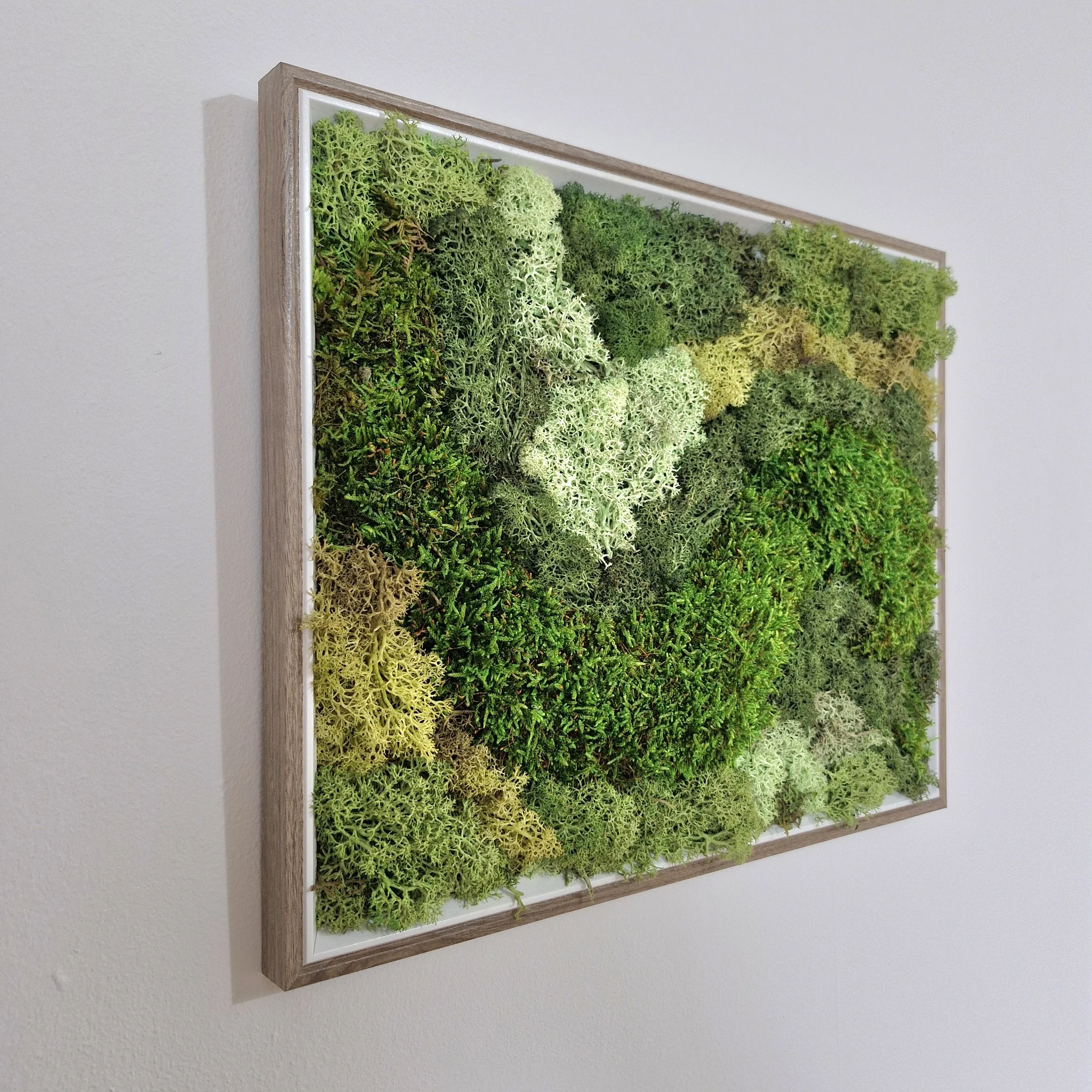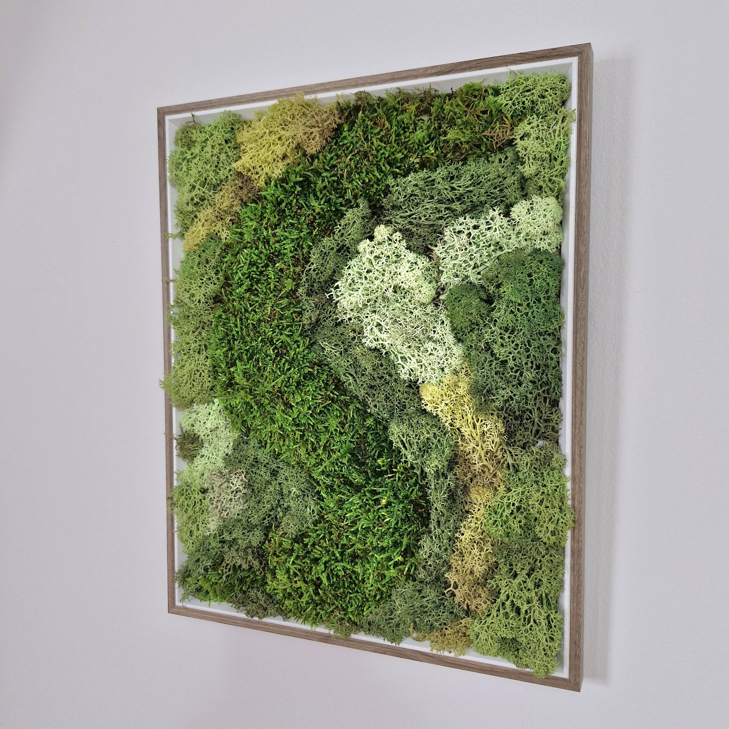 Moss pictures help to bring the outdoors inside, moss has many health benefits, including absorbing noise and help purify the surrounding air. Moss also helps increase mental well-being, reducing stress levels and improving positive emotions.